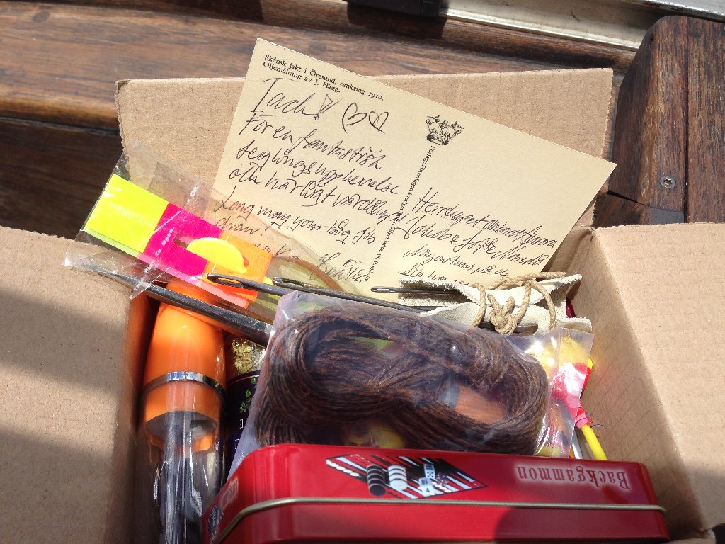 Denna box fylld med underbara presenter fick vi från Cissi som seglade med oss tidigare under säsongen.