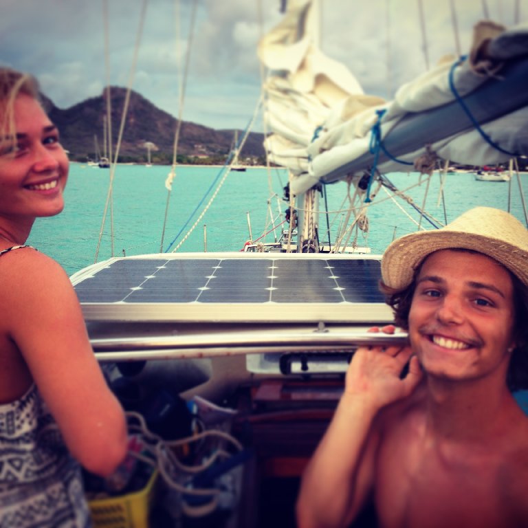 Är glada för att seglingen till Antigua från Barbuda snart är över.