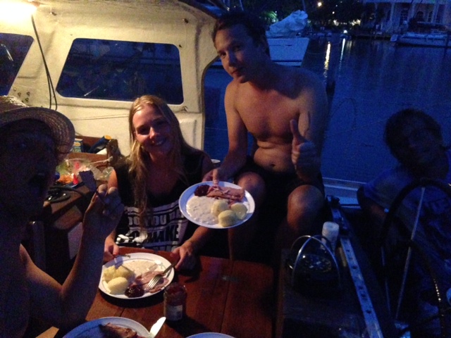 Posted on 15th maj, 2014 under No CommentsVi hade hört om Maddes skicklighet i att laga svensk husmanskost hela resan. När vi hittade lingonsylt i butiken i Jolly Harbour var det bara att köra.