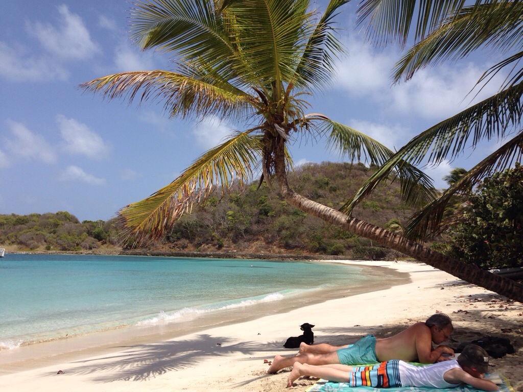 Posted on 9th mars, 2014 under No CommentsMartin och Elis vilar i skuggan av en palm i Salt whistle bay.