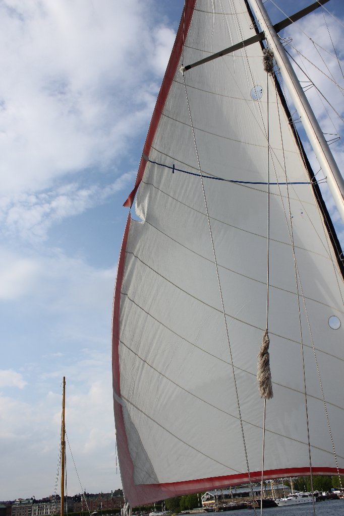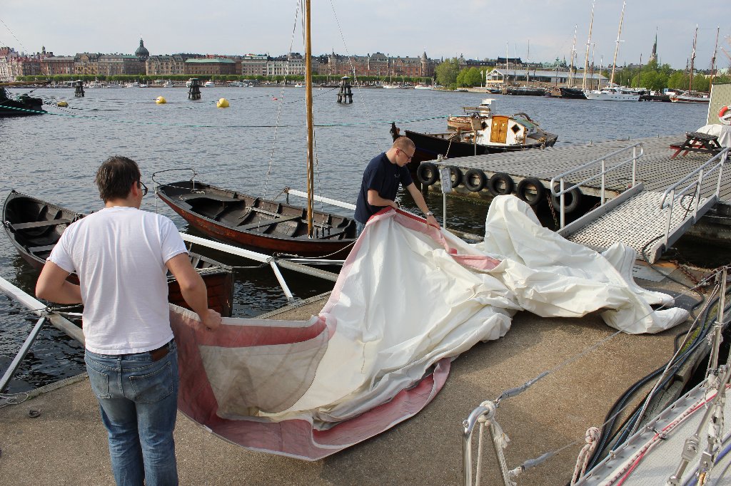 Igår var vi nere och fixade med Aurora igen. Den här gången blåste det lite mindre så vi rullade ut den trasiga genuan och tog ur den från rullen.