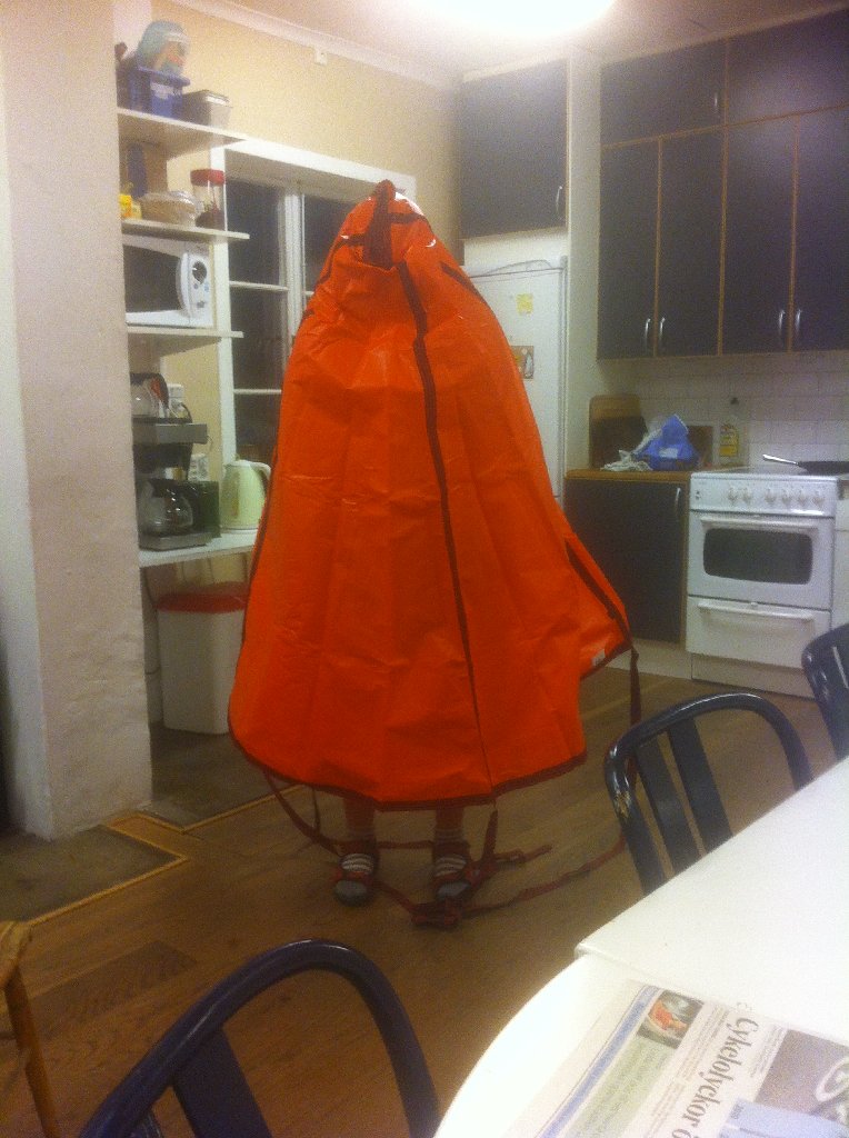 Igår kom drivankaret som vi beställt från Langfardseglarbutiken.se. Vi hade letat efter ett stort drivankare som var förstärkt ända till botten, och hittade den modellen på några internetbutiker, men Långfärdseglarbutiken var billigast. Jag som aldrig har sett ett drivankare IRL förut, tyckte det var coolt att man kunde stå inne i den.