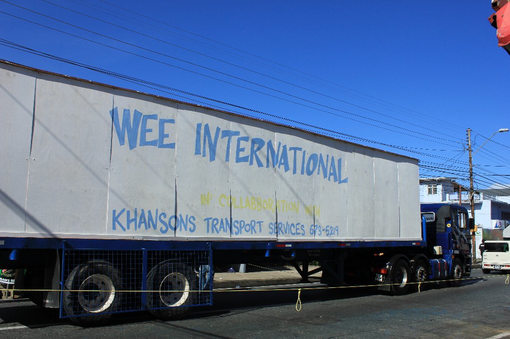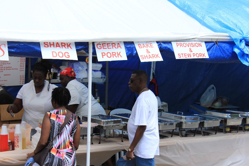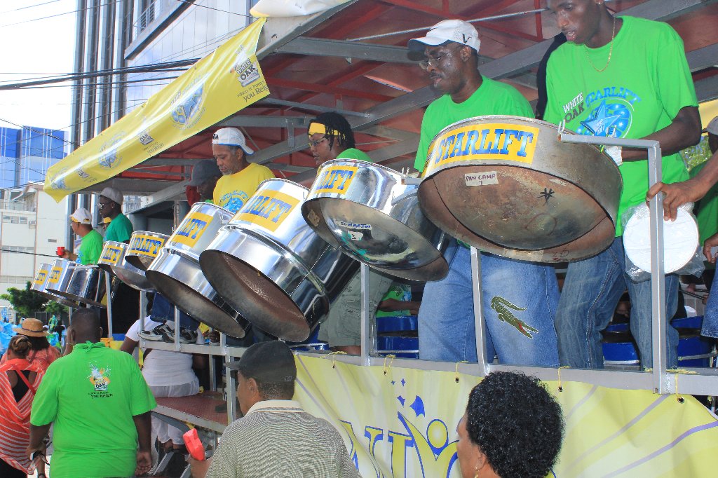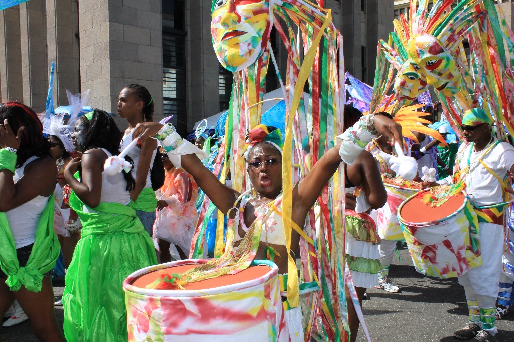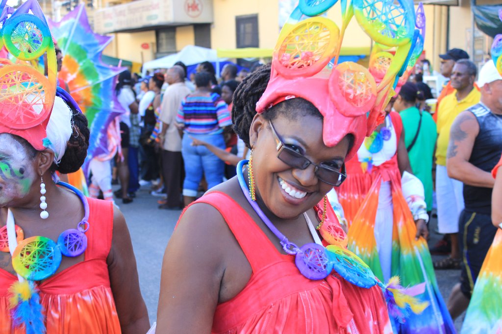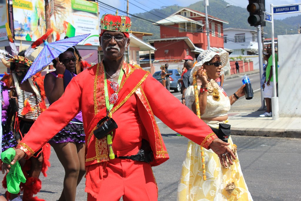 Den stora karnivalsparaden/finalen var i tisdags. Några av oss hade beställt transport av den lokala fixarkillen Jessie James, och för att undkomma trafiken så var vi inne i Port of Spain väldigt tidigt, kl 07. Vi käkade på Subway Express, dvs en vanlig Subway med galler runt om. De gjorde mackan på ett bord utomhus och sen fick man mackan genom gallret. Det var många restauranger som hade gjort så längs gatan som paraden var. De har väl lärt sig att det inte är så bra att släppa in alla tusentals människor som går längs gatan den dagen.